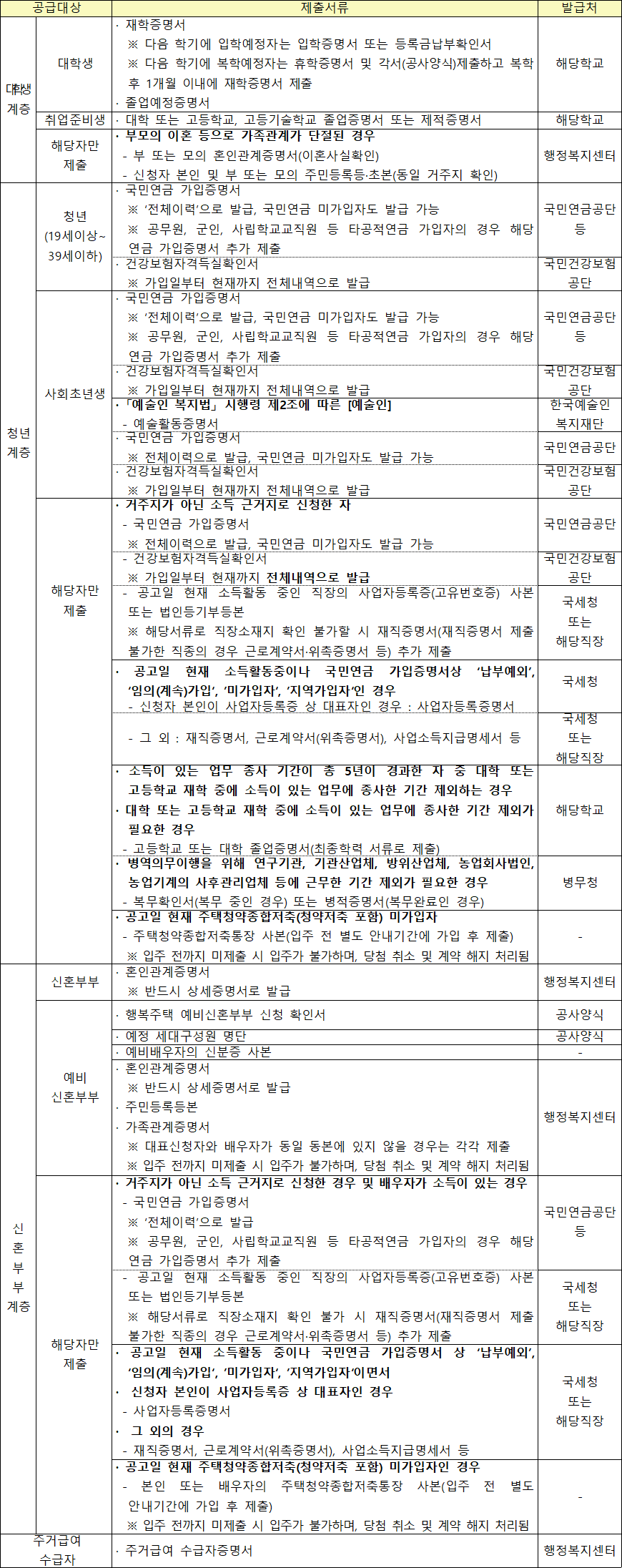 ※ “대학생 계층” 및 “청년 계층”은 모집공고일부터 입주시까지 무주택자이어야 합니다.