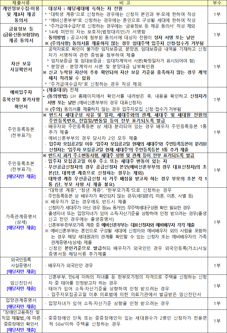 ② 기한 내 미제출 시 청약 의사가 없는 것으로 간주하여 당첨(예비)자에서 제외합니다.