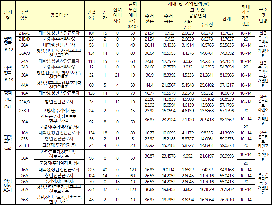 of 17평택시 안성시 행복주택 예비입주자 모집 공고 요약