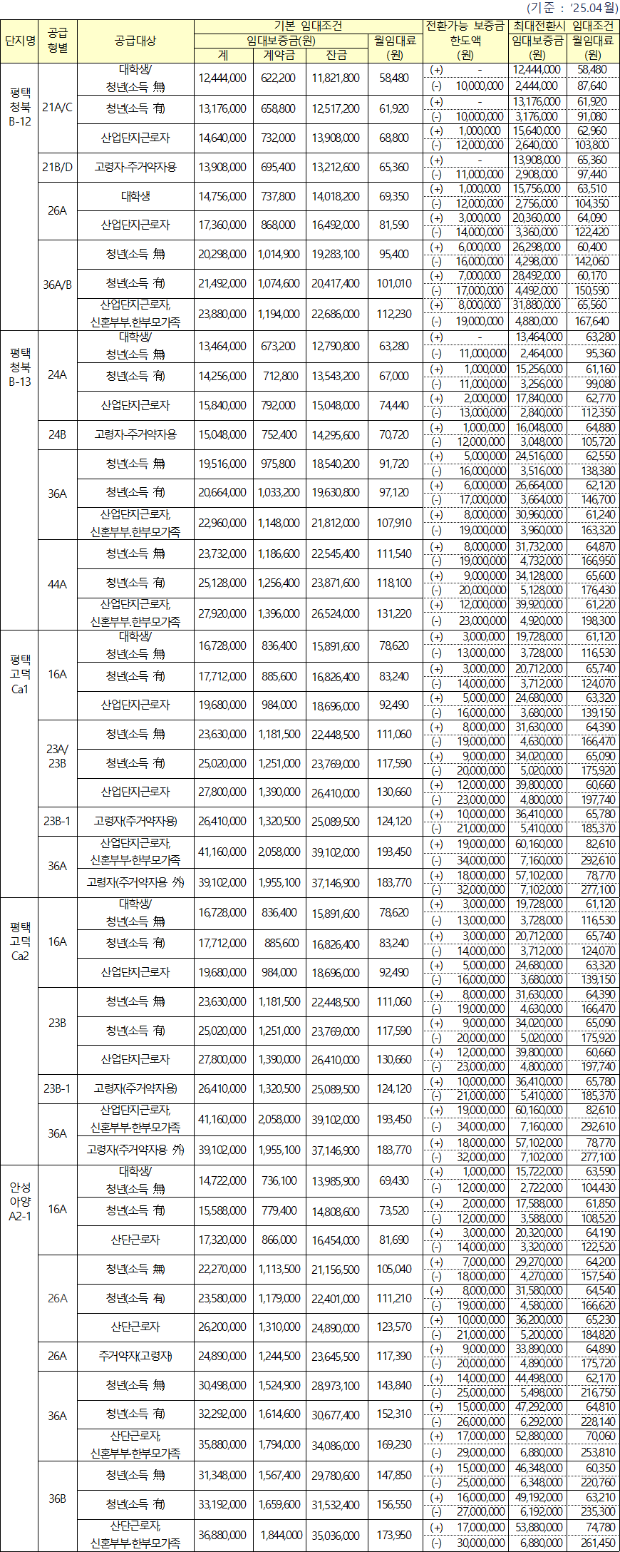 ③ 소득이 없는 “청년 계층” 신청자는 동일 면적의 대학생 계층 임대조건이 적용됩니다. 임대조건은 갱신계약전까지 유지되며 갱신계약시 소득 유무에 따라 변경된 임대조건을 적용합니다.
