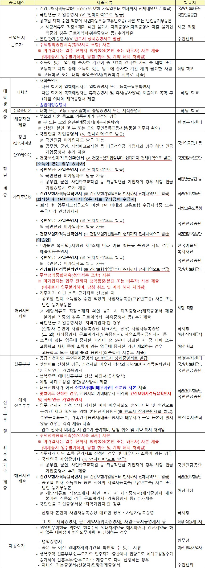② 갱신계약자격은 공급대상자별 일반 공급대상자의 신청자격과 동일합니다.