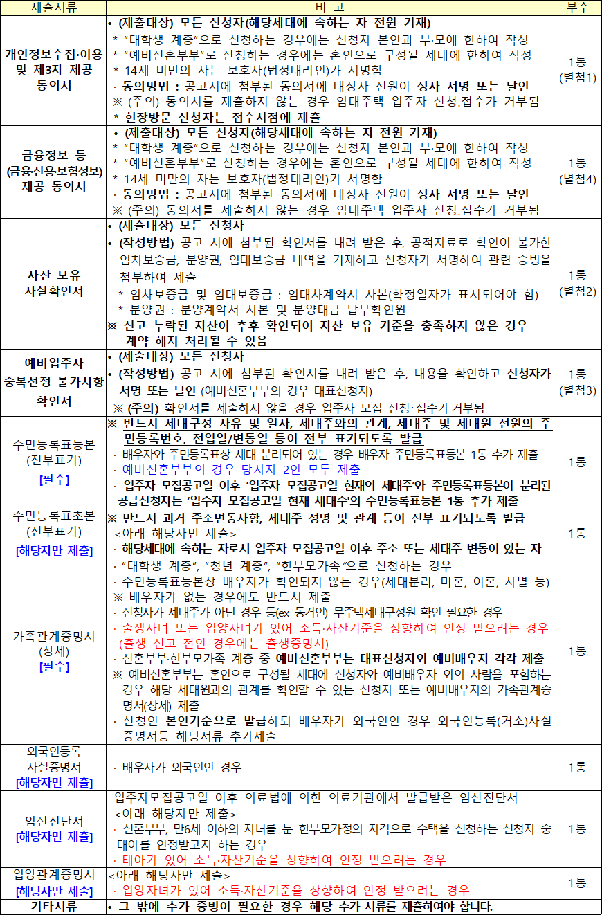 ⑦ 입주자격 조사결과에 대한 부적격사유에 대한 소명의무는 공급신청자에게 있습니다.