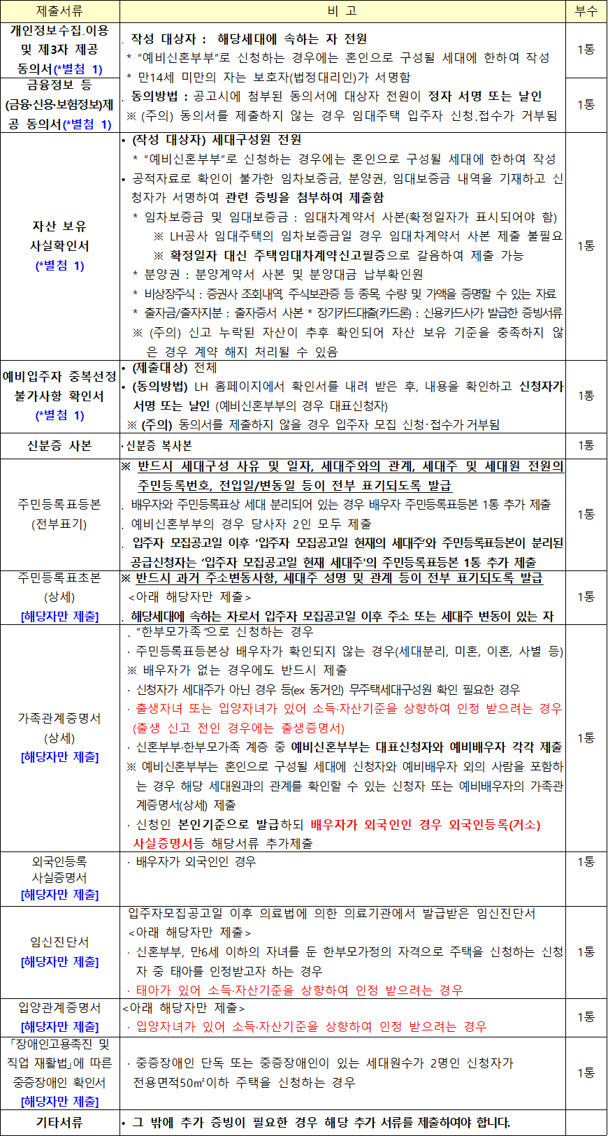 | 인터넷 청약 | ▪ PC : LH 청약플러스 → 청약 → 임대주택 → 청약신청하기 ▪ 모바일 : LH 청약플러스 앱 설치 → 청약 → 임대주택 → 청약신청 |